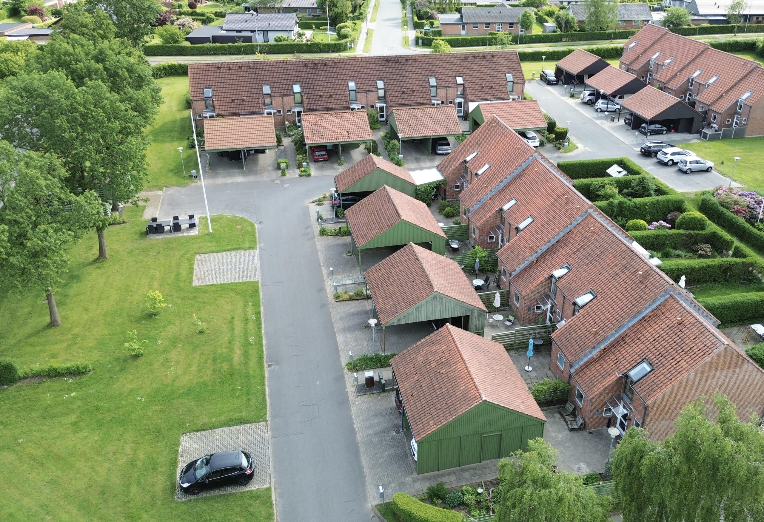 De grønne fællesarealer omkring husene giver plads til både leg, afslapning og små sammenkomster. Med direkte adgang til stier og natur er det nemt at tage en gåtur og nyde de smukke omgivelser. Vi passer godt på vores fælles rum – for naturen er en vigtig del af vores hjem.